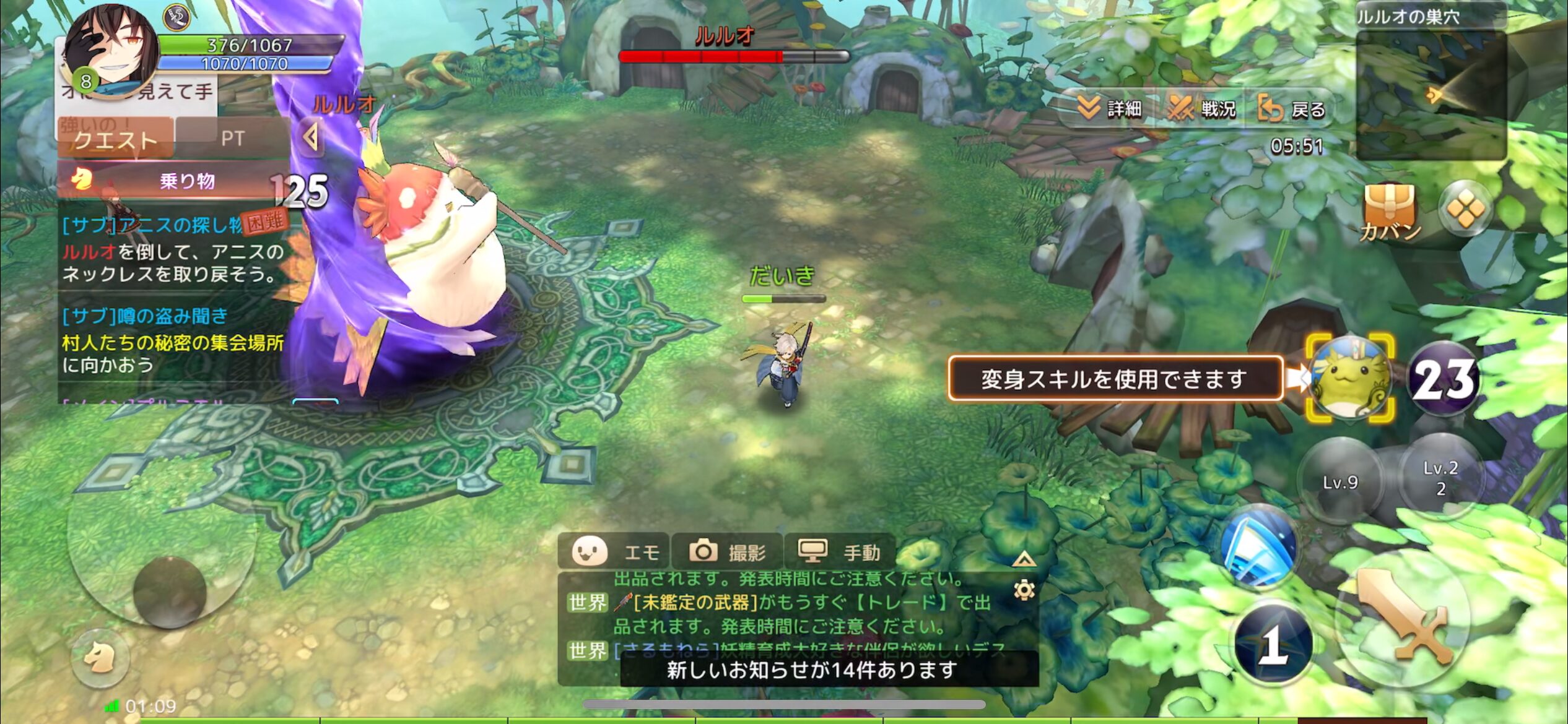 操作性は割とユーザーフレンドリー!初心者にも優しく、自動操作やクエスト誘導があり、アクション強めが苦手な人でも入りやすい仕組みがあります!