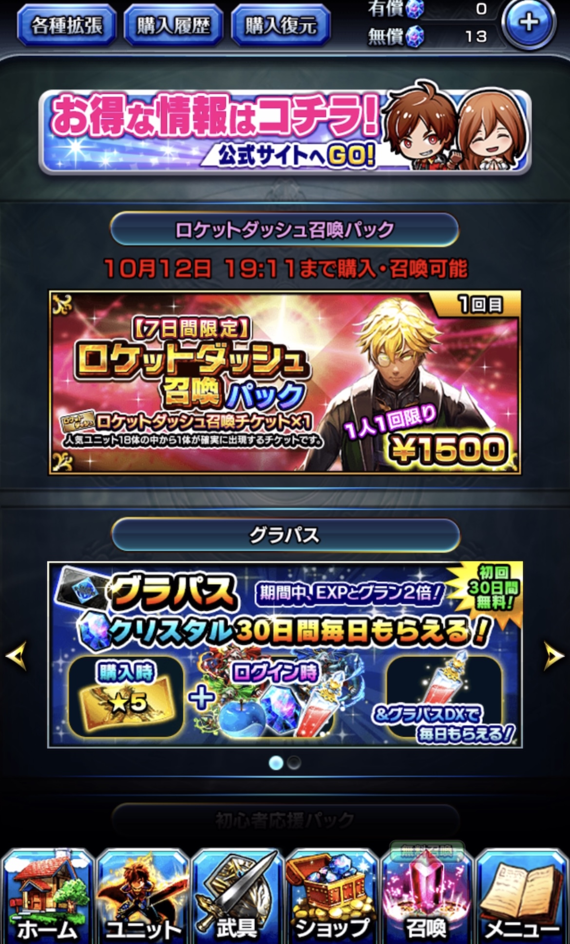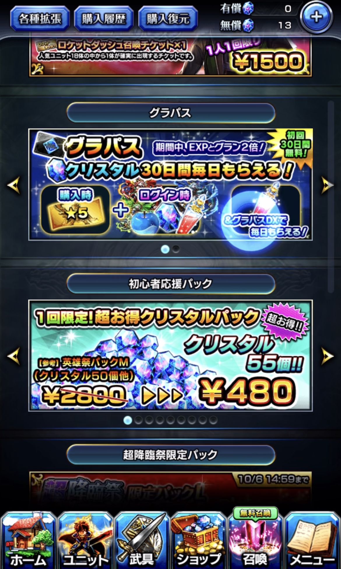 グラサマの課金要素は「ガチャ石(クリスタル)」購入がメイン!