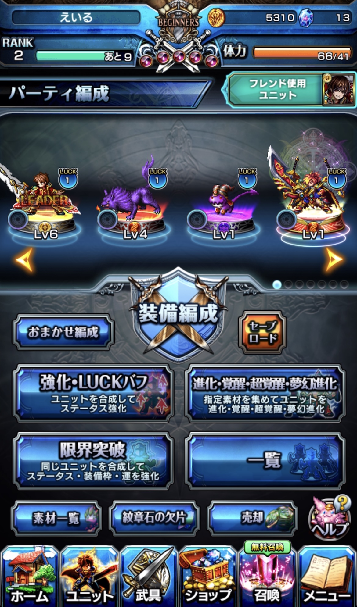・メインで使う4体を集中育成(全員に装備を持たせる)!