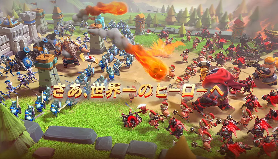「自分の城や領地を発展させていき」「兵を訓練し/資源を生産し/英雄(ヒーロー)を強化し」「ギルドに加入してイベントや大規模戦闘に挑む」といった、いわゆる“ストラテジー×RPG”の融合スタイル!