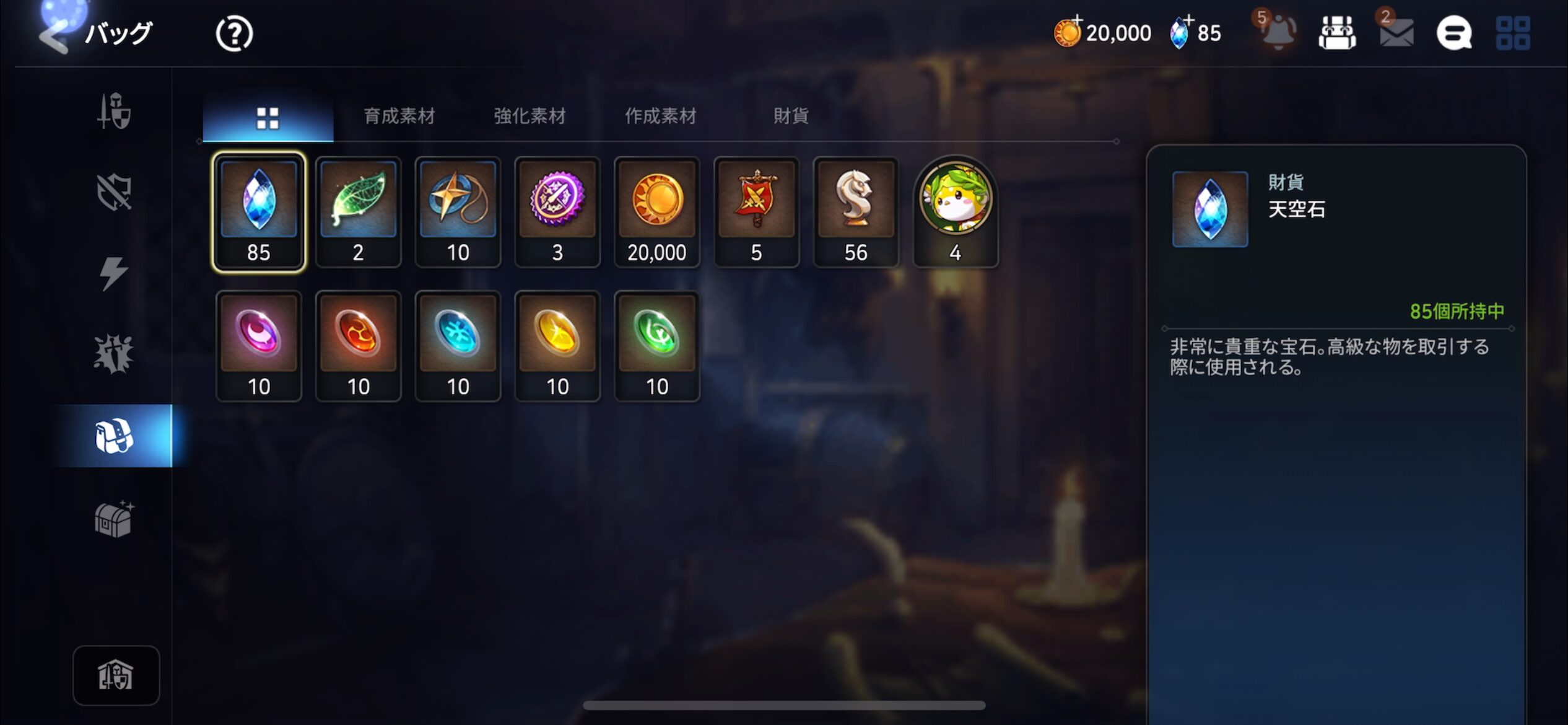 ・オルビスの心臓: 時間経過でゴールドや「天空石(ガチャ石)」を生成します!