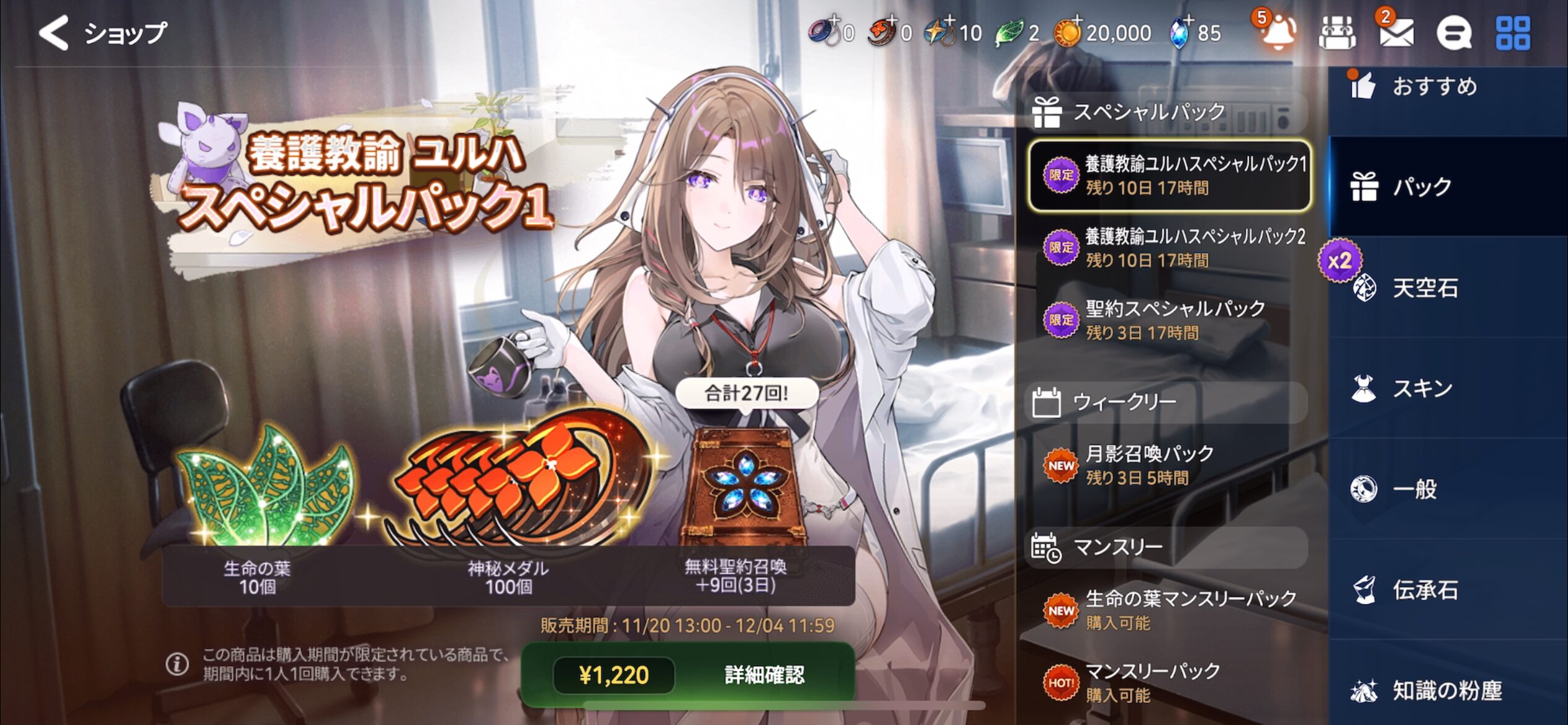・マンスリーパック1・2: 毎日少量の天空石がもらえたり、経験値獲得量がアップしたりと、非常にコスパが良いです!