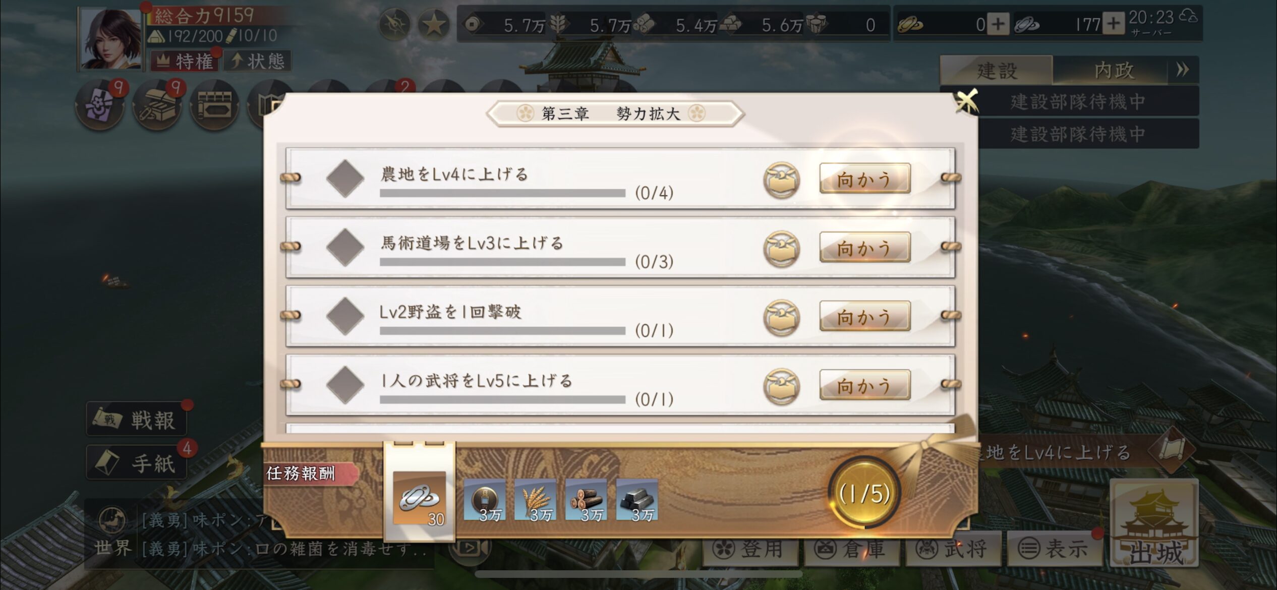 そんな時は画面左下に表示される「章節任務」を進めましょう!