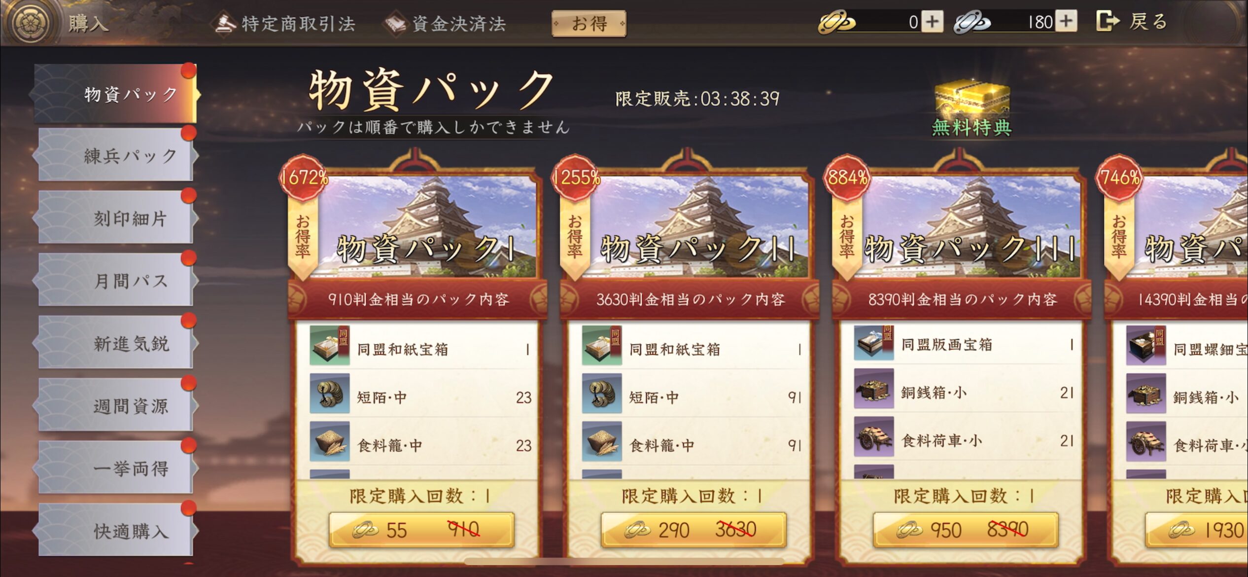 ・初回購入特典: わずか数百円の課金で、超強力な武将「まつ」などが手に入るパックは非常にコスパが良いです!