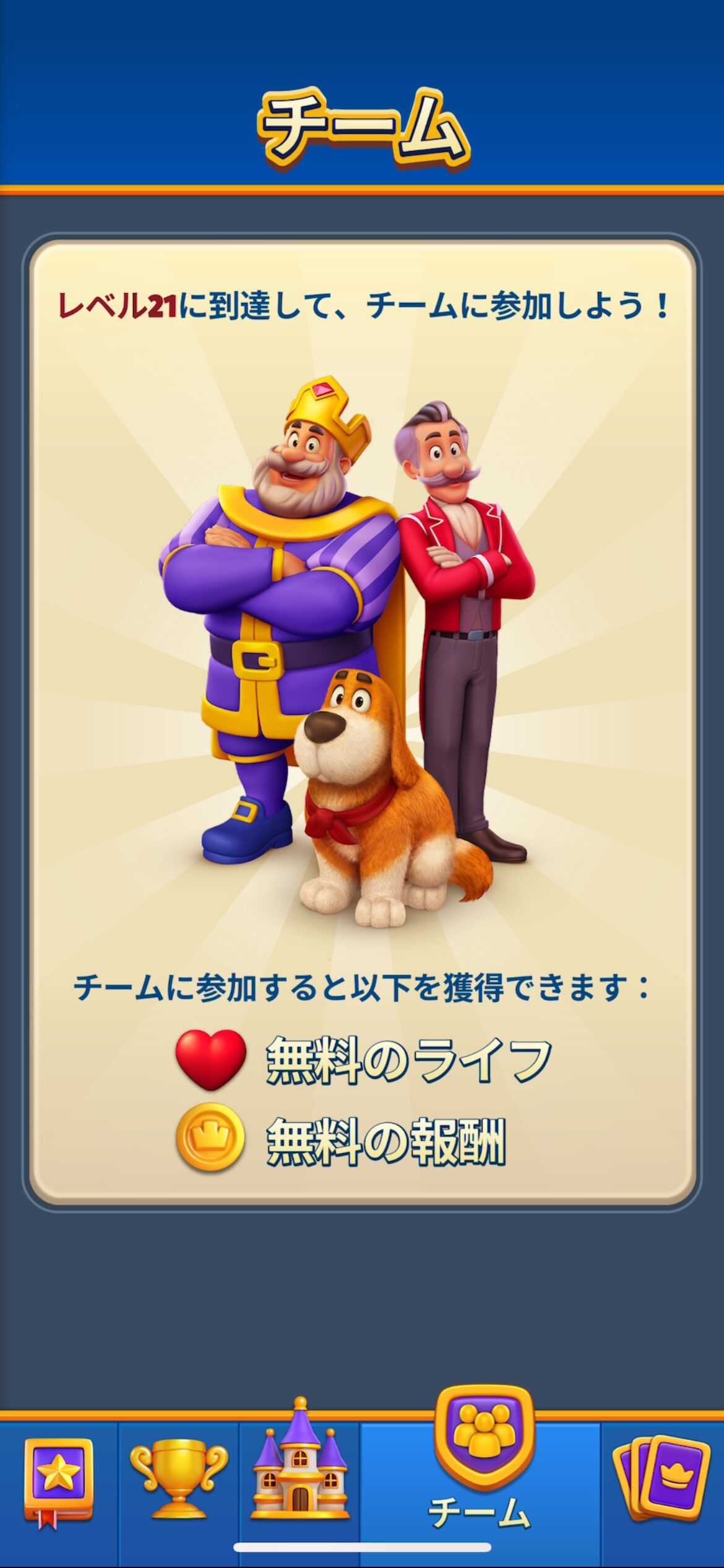 ステージ21に到達すると「チーム」機能が解放されます。!