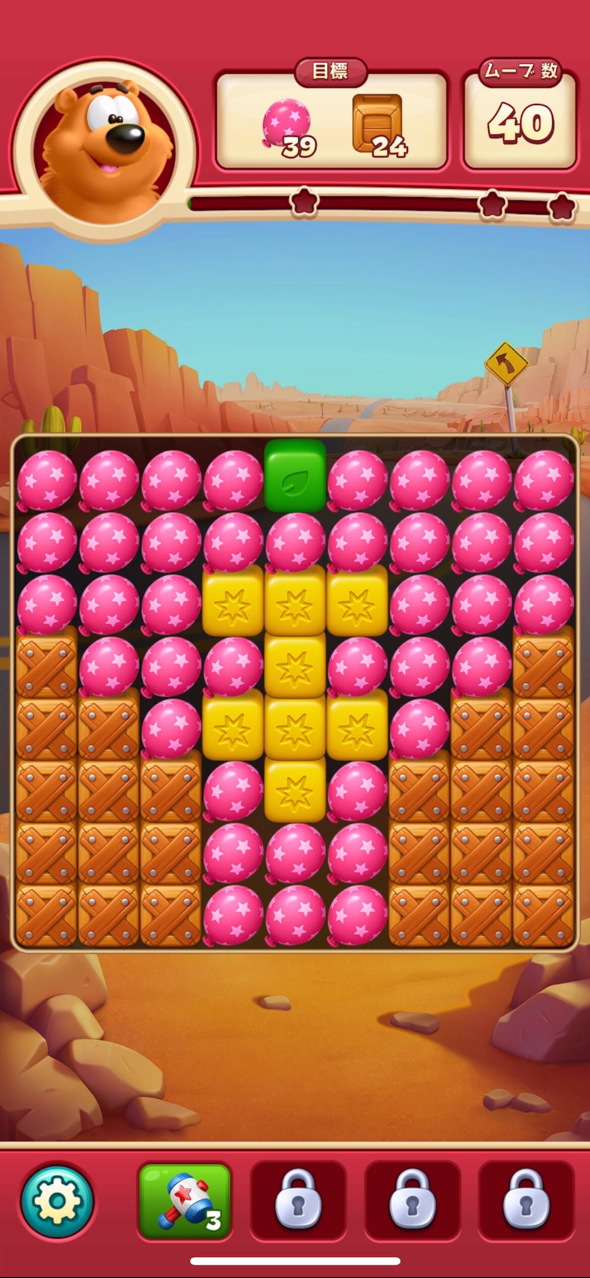 「アヒルを一番下まで落とす」「木箱を壊す」「風船を割る」など、クリア条件(ターゲット)が多様化していきます!