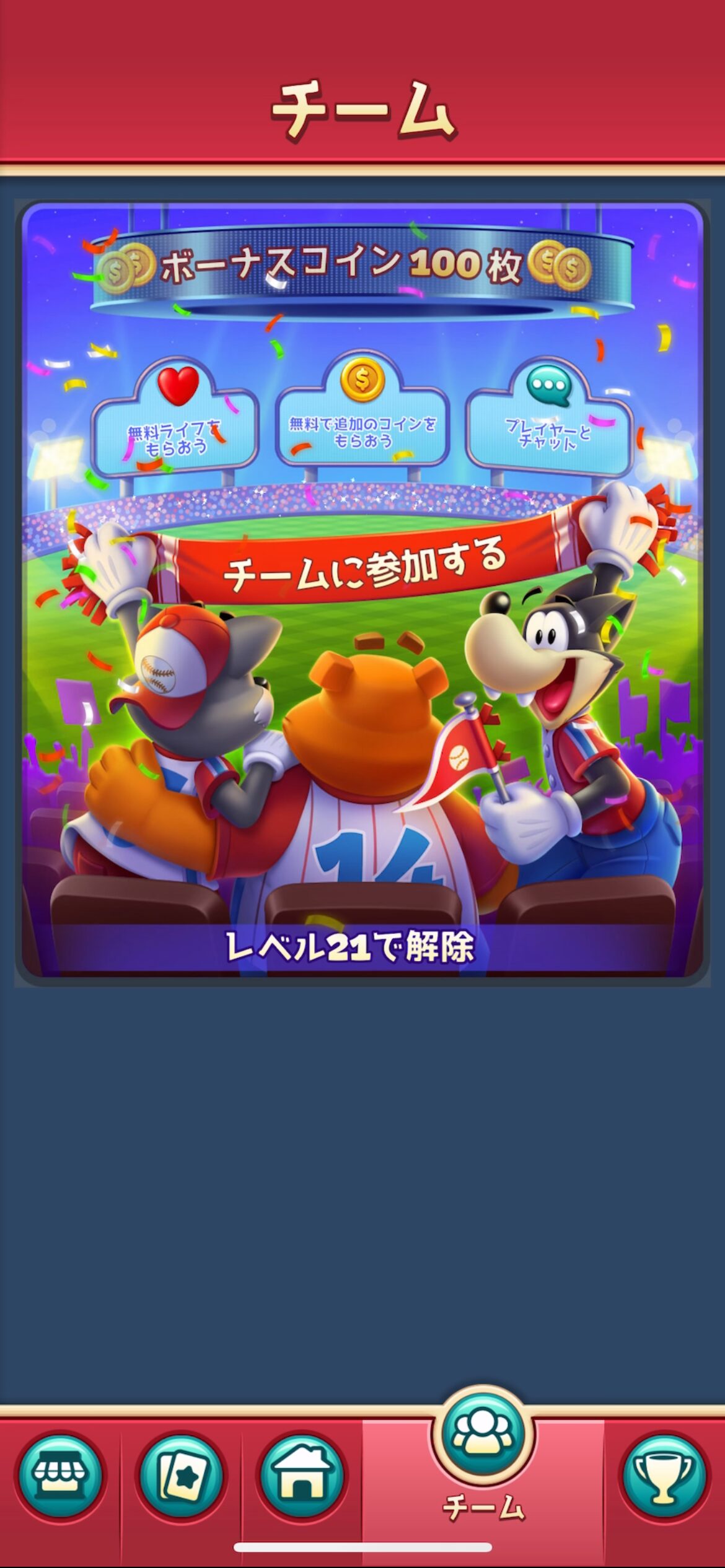 レベル20に到達すると「チーム」機能が解放されます!これは絶対に活用すべき機能です!
