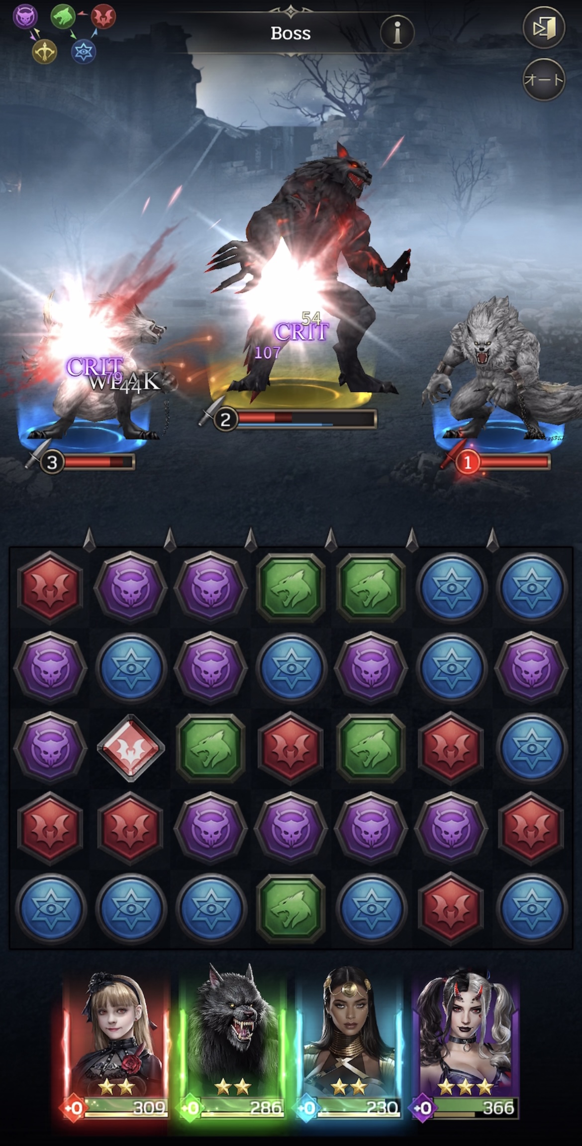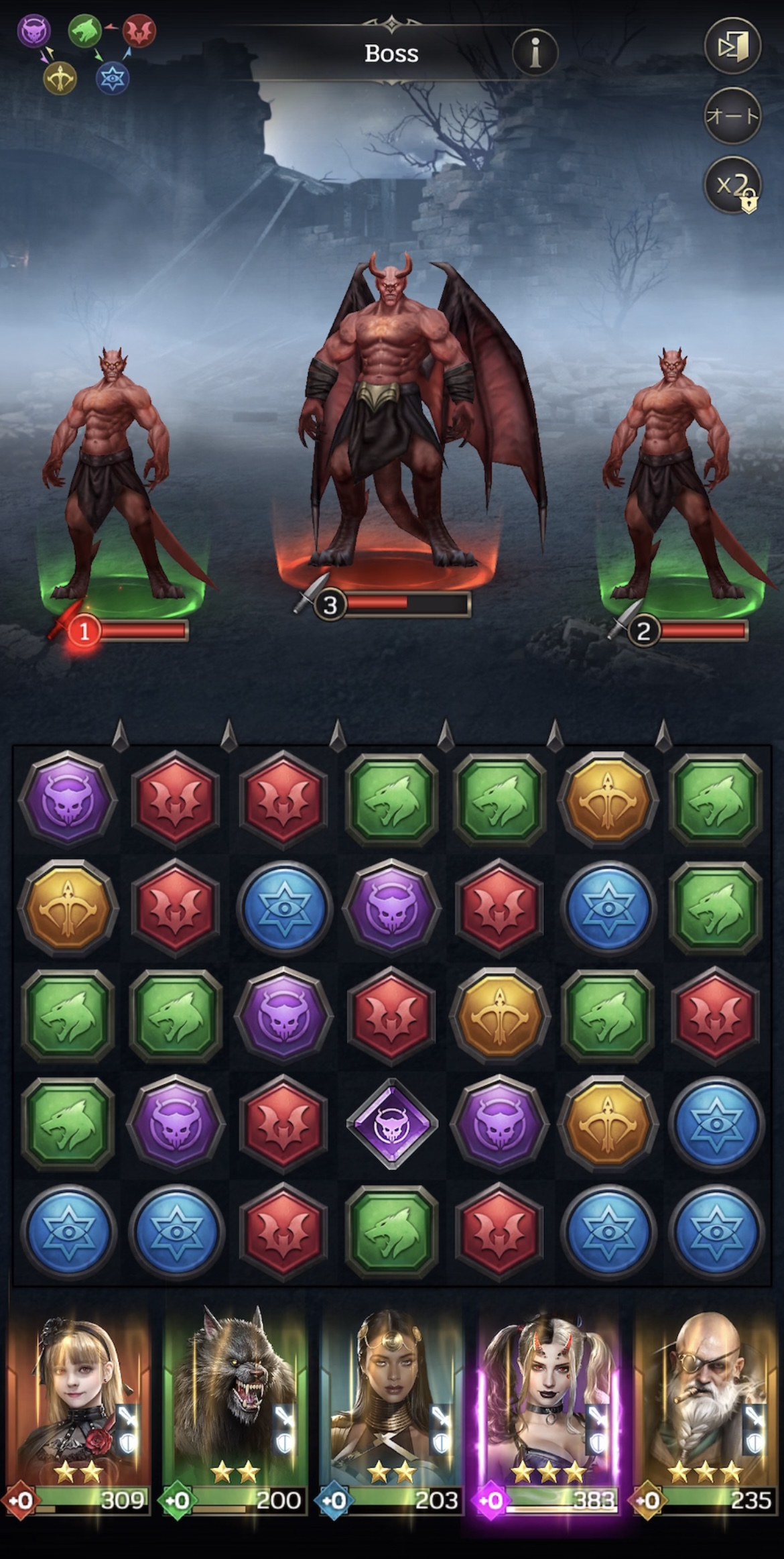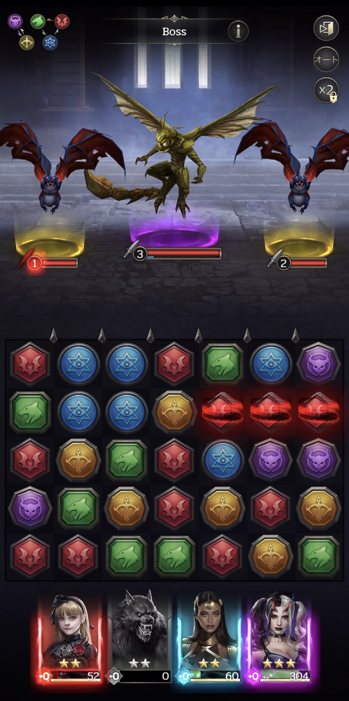 ・属性相性を意識:火は風に強く、風は水に強いといった相性があります!有利な属性で攻撃するとダメージが数倍変わるため、パズルを動かす前に敵の属性を確認しましょう!