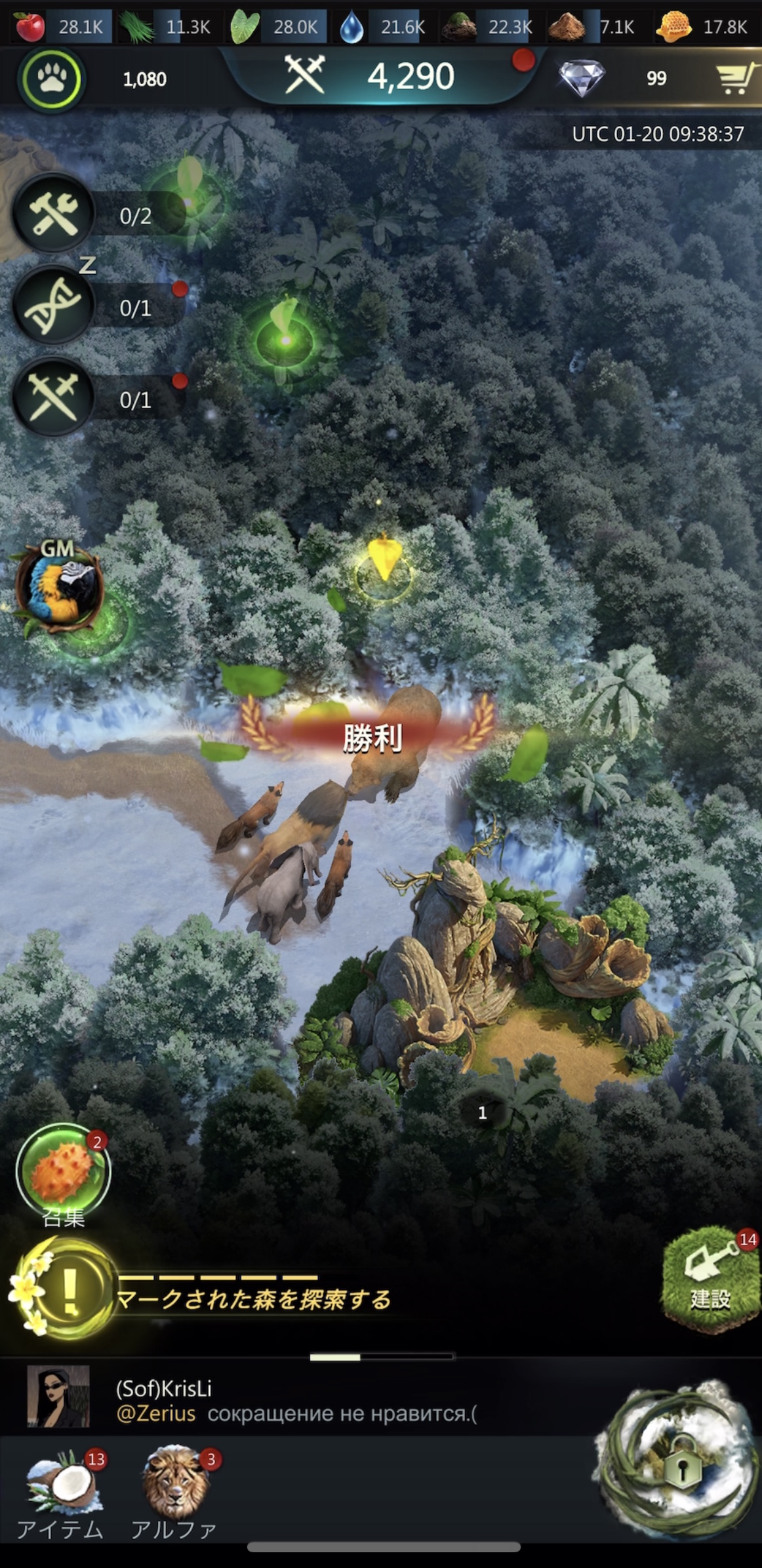 とにかく動物がリアル!ライオンの咆哮やゾウの動きが細かくて、見ているだけで癒やされる!同盟の仲間とチャットしながら進めるのが楽しいです!